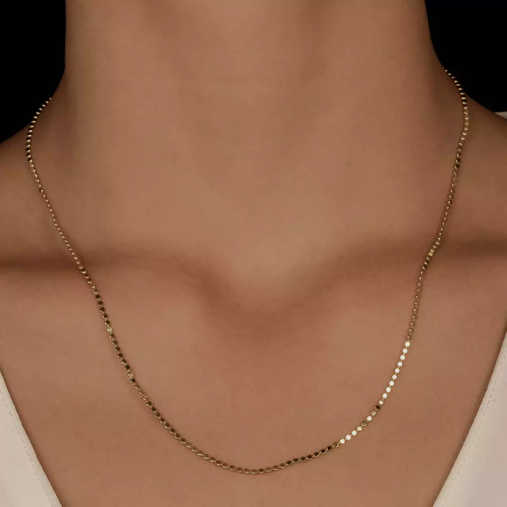 Simplicidade que faz uma declaração. Nosso colar minimalista é mais do que um acessório, é um lembrete diário para valorizar o essencial e abraçar a beleza da simplicidade.