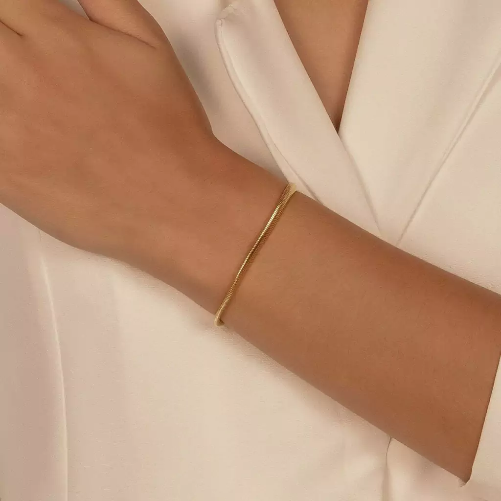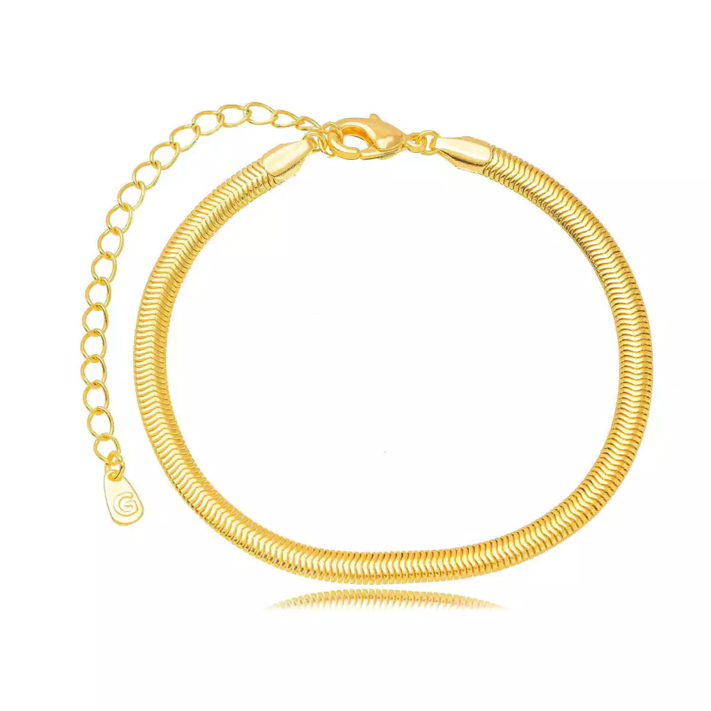 A malha dourada desta pulseira possui o brilho sutil da moda e é a expressão de charme que você precisa. Vista-se com o melhor!